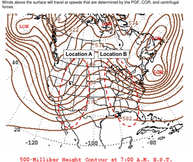 The windflow at the surface may best be described as being. 02 h and 08 h. Figure 1 For the area identified by the red dashed oval at Location A in Figure 1.